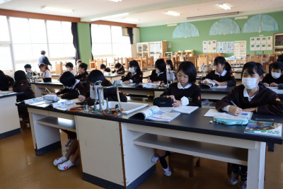 今日の3校時、5年生は「大三島少年自然の家の係会」をしました。