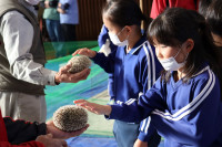 どの学年の子どもたちも、お二人の先生の話を真剣に聞いていました。